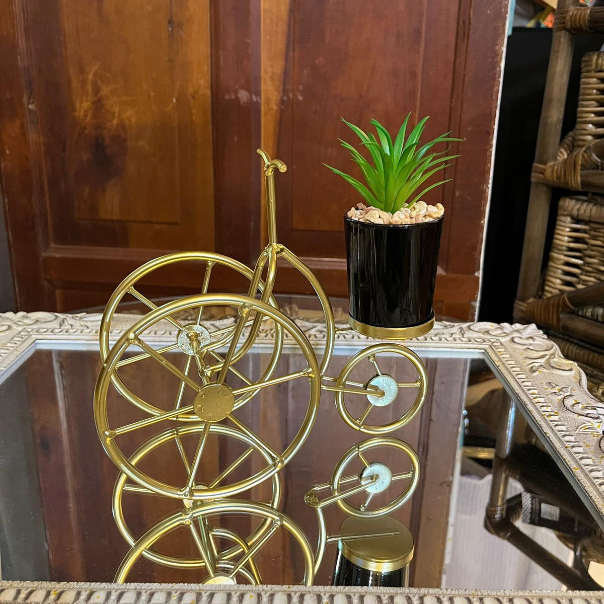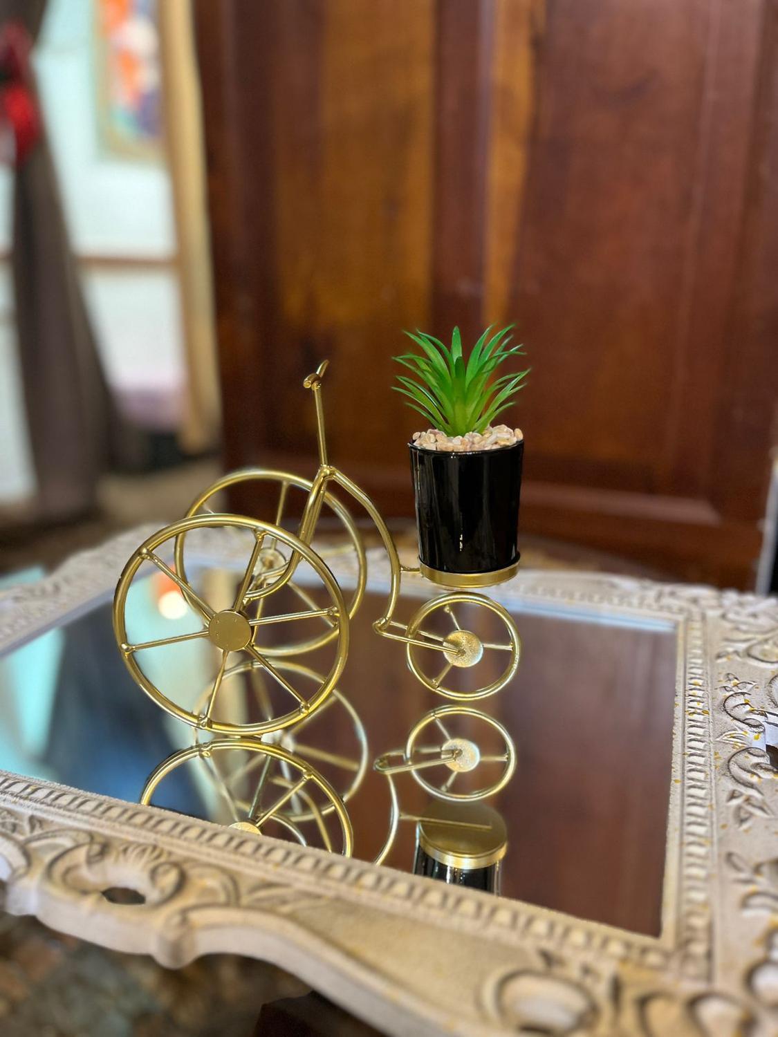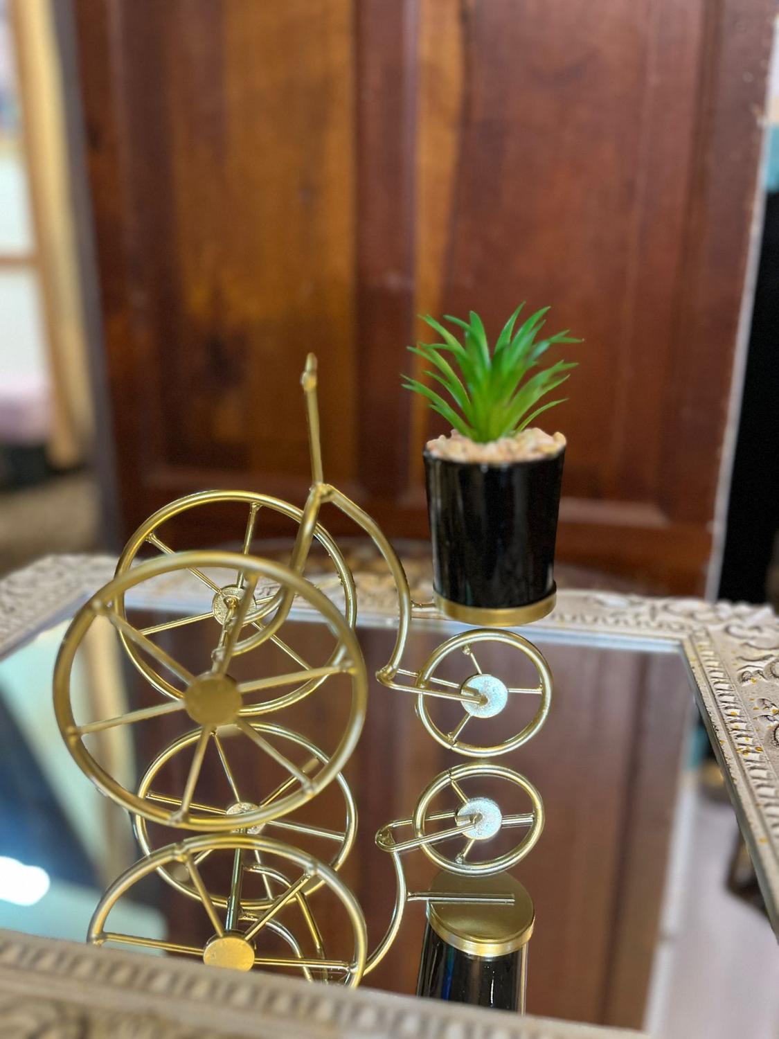 La figura Adorno Bici con planta artificial esta diseñada para que podamos visualizar sus detalles de la mejor manera posible, con unas medidas de: 19 cm X 8 cm X 24 cm (Ancho x Largo x Alto) es un adorno que dará vida a lugares que no llega la luz natural. Se pude colocar en mesas de centro y laterales, arrimos, repisas u en otros.