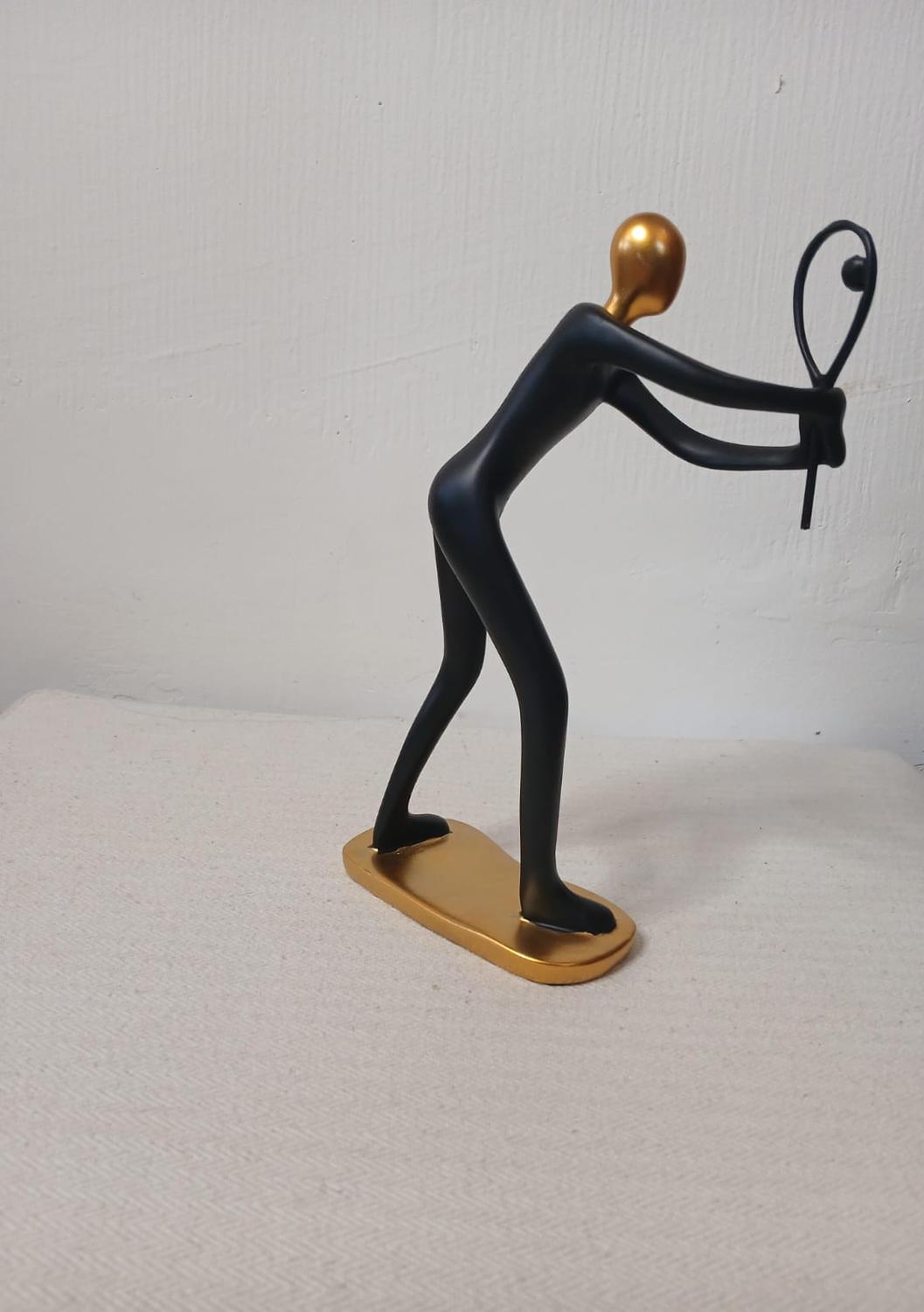 Esta figura de tenista negra es un tributo a la pasión y la determinación. Con su diseño dinámico y realista, esta estatua captura la esencia del deporte. Un regalo ideal para los amantes del tenis y la superación. - Material: ceramica - Altura: 25 cm - Peso: 0,5 kg - Color: Negro
