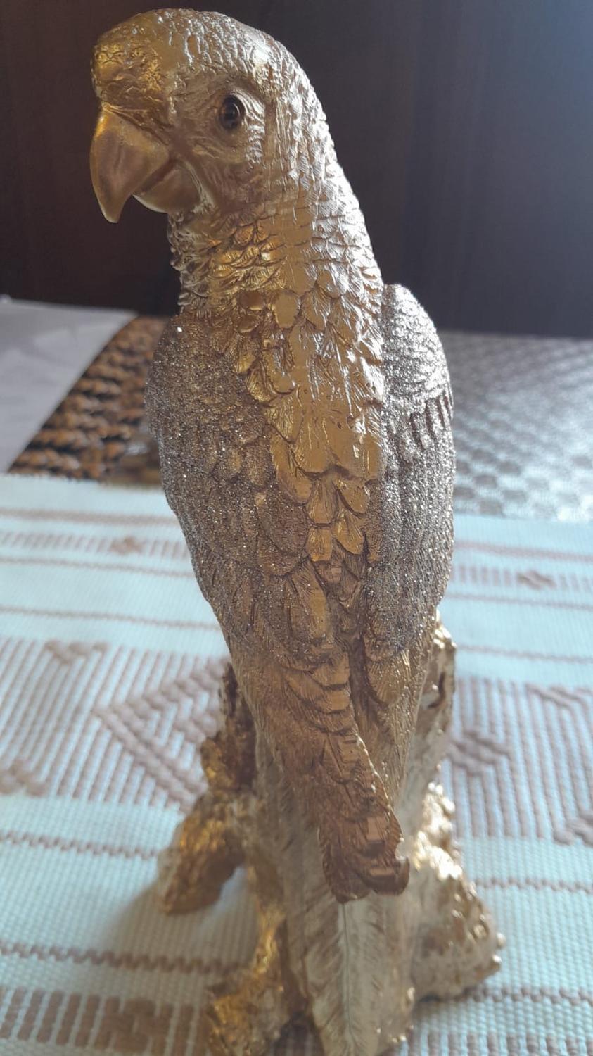 "Figura de loro en dorado, un accesorio elegante y alegre que añade un toque de personalidad a tu espacio. El loro, conocido por su plumaje colorido y su alegría, se convierte en una pieza decorativa que irradia energía positiva. La dorado de alta calidad le da un brillo y durabilidad excepcionales. Un regalo perfecto para alguien especial o un tratado para ti mismo. Puedes colocarlo en tu escritorio, estante o mesa de comedor para agregar un toque de estilo y alegría a tu entorno."Medidas alto 25 cm. Ancho 13 cm. "Figura loro, dorado, accesorio, decoración, personalidad, espacio, plumaje, alegría, energía positiva, regalo, lujo, estilo, escritorio, estante, mesa comedor, hogar, oficina, bienestar."