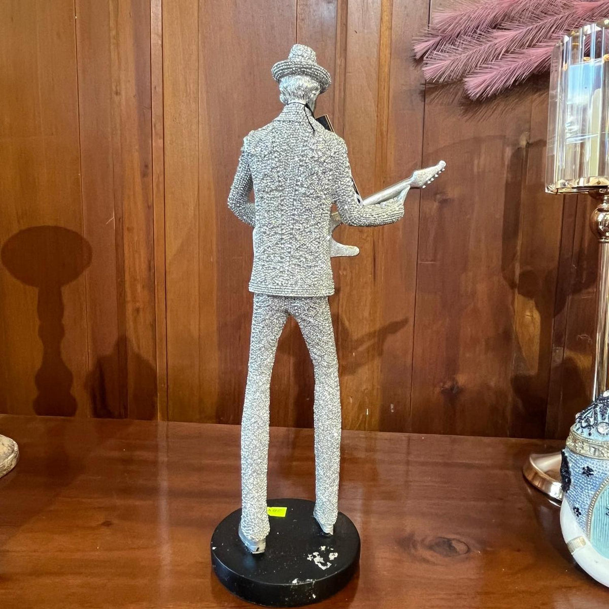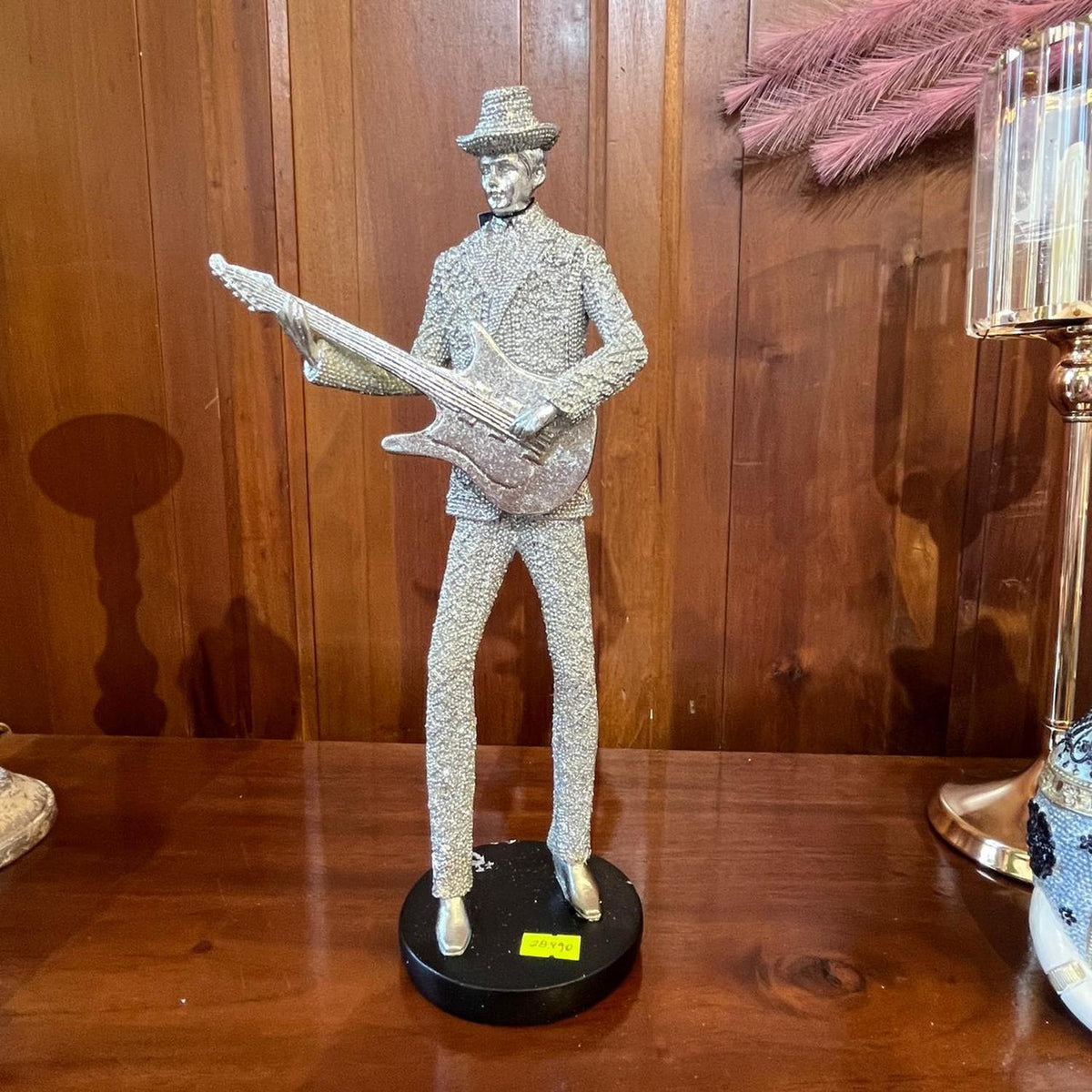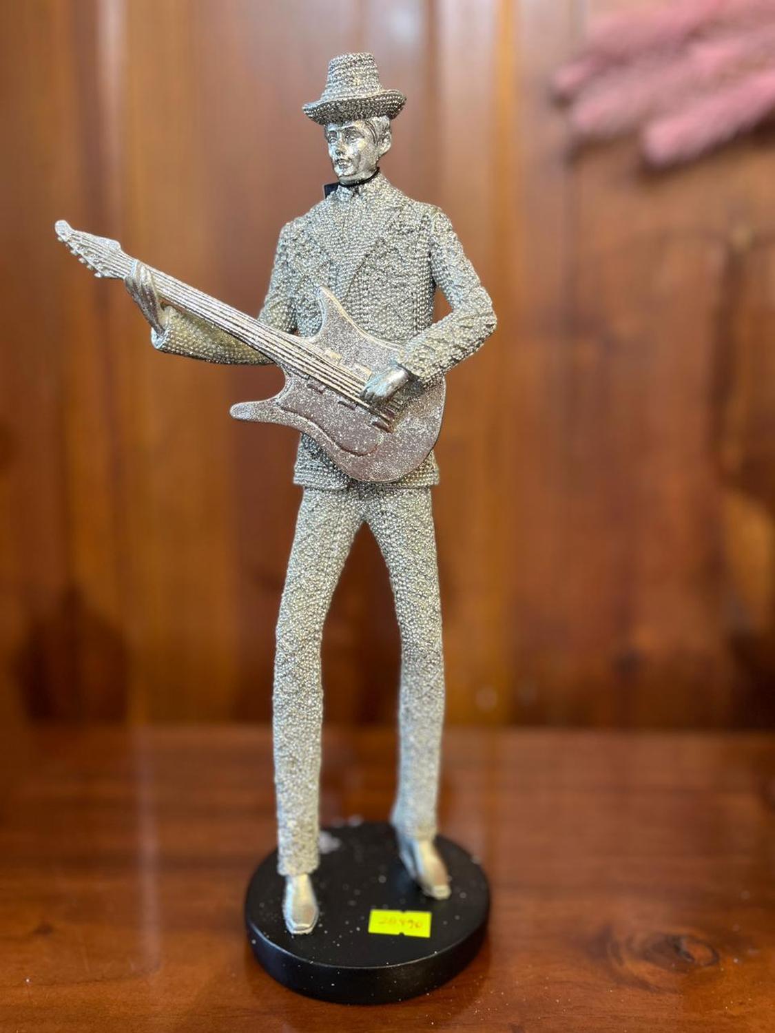 La "Figura Guitarrista Plateado" con unas dimensiones de 19 cm de ancho, 14,5 cm de largo y una altura imponente de 36,5 cm. Ya sea en una repisa, en una mesa auxiliar o como pieza central en tu área de entretenimiento, esta figura se convierte en un punto focal que celebra la conexión entre el arte y la música.Además de su atractivo estético, la "Figura Guitarrista Plateado" viene respaldada por una garantía de 3 meses. Esta garantía proporciona tranquilidad y confianza, asegurando que tu inversión en esta representación musical esté protegida contra cualquier inconveniente o defecto inesperado durante los primeros tres meses después de la compra. Figura Guitarrista Plateado