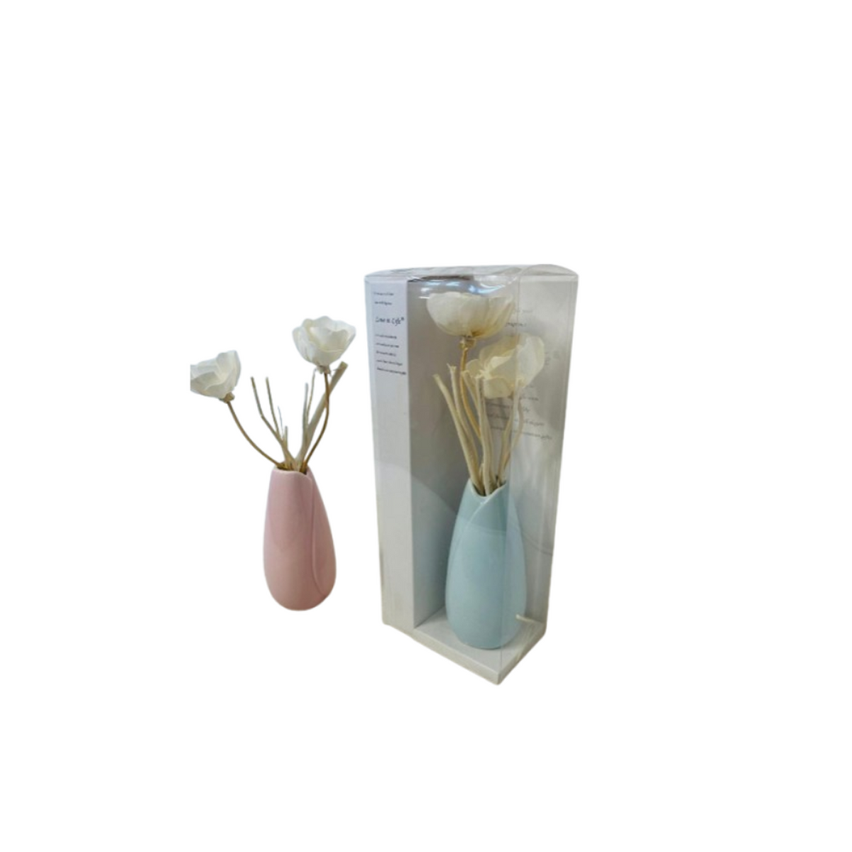Jarrón con Flores Blancas de Aromaterapia Este hermoso jarrón con flores blancas de aromaterapia es un regalo para los sentidos. Las flores blancas, combinadas con aceites esenciales relajantes, crean un ambiente de paz y tranquilidad en cualquier espacio. Detalles: - Material: jarrón Cerámica flores de tela - Altura: 25 cm - Peso: 0,5 Kg - Color: jarrón rosado