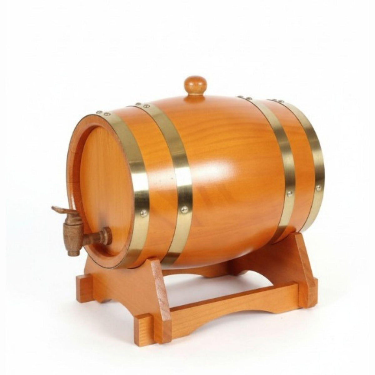 Barril decorativo en madera estilo cervecero, con acabado rústico artesanal.