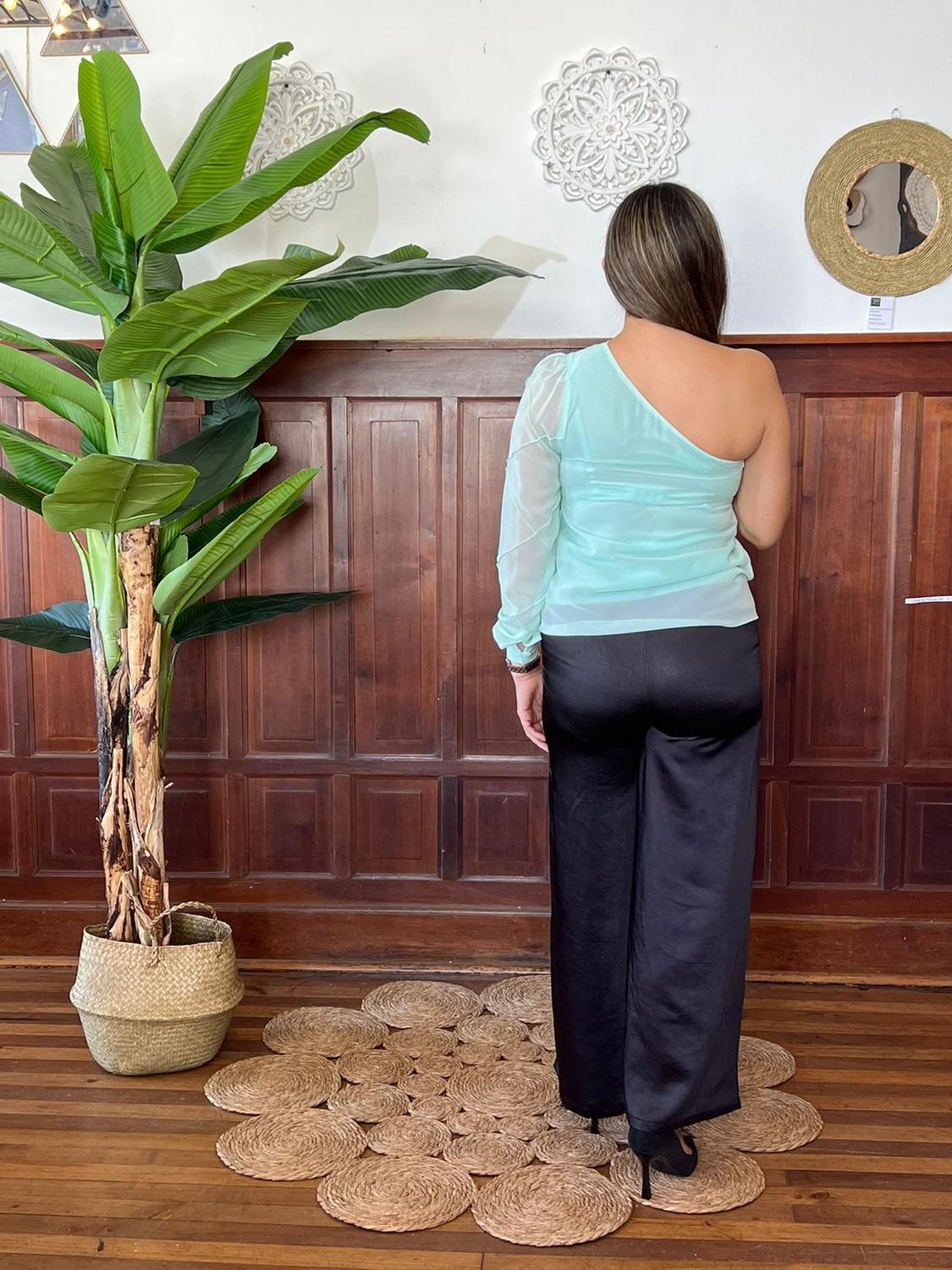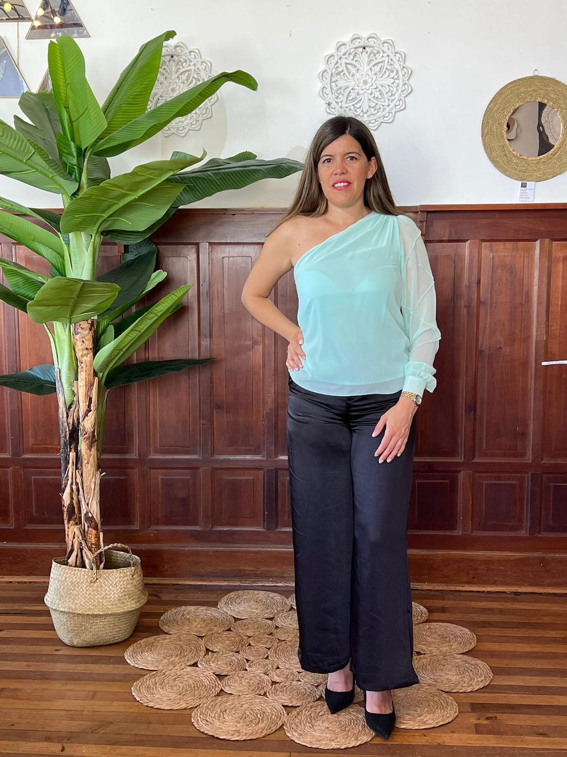 Blusa de gasa color verde con 1 manga traslucido con botón forrado y con diseño de rombos, sin bolsillos.Este producto se encuentra disponible en colores amarillo, rosa, fucsia y verde menta. Cuenta con una garantía de 3 meses ante cualquier inconveniente que llegue a poseer el clienteImportado exclusivamente desde España a Chile por Integranegociospa para Divinopecadostore Blusa Verde 1 Manga Rombos Cosidos