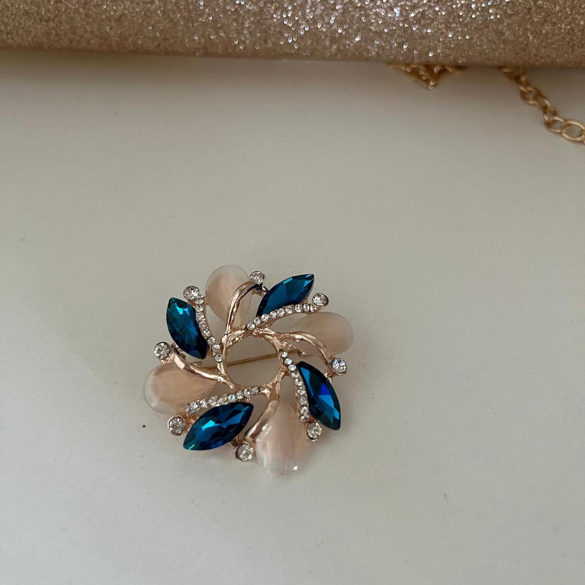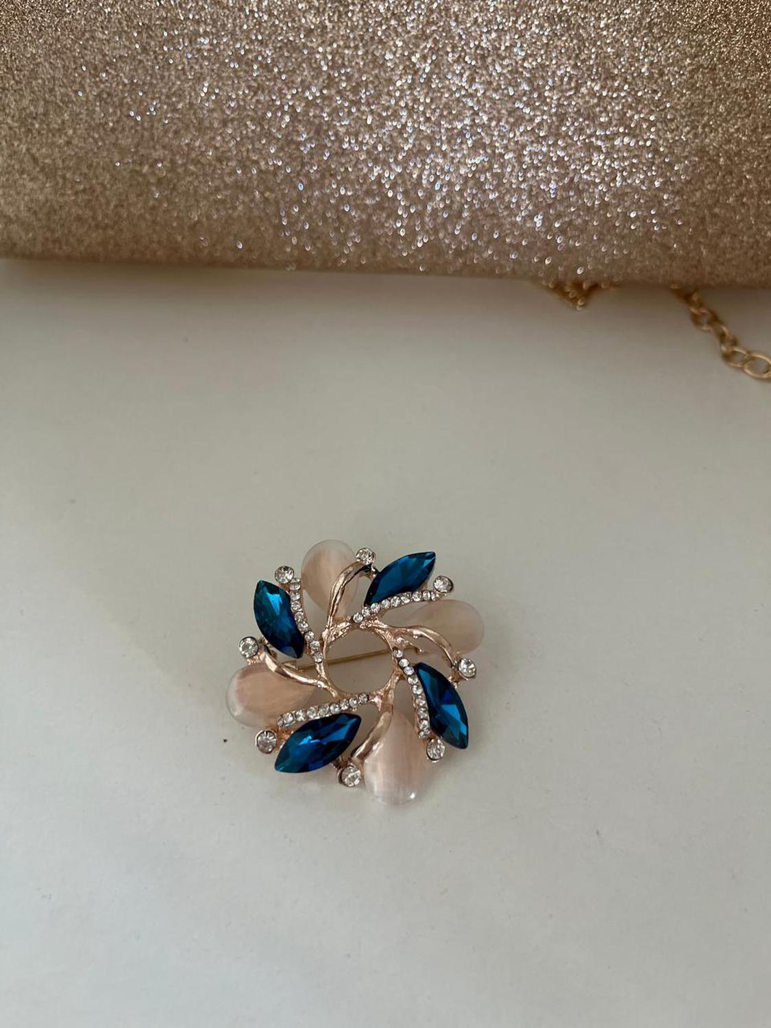 Inform when this item available Prendedor con Pétalos de Color Turquesa y Blanco