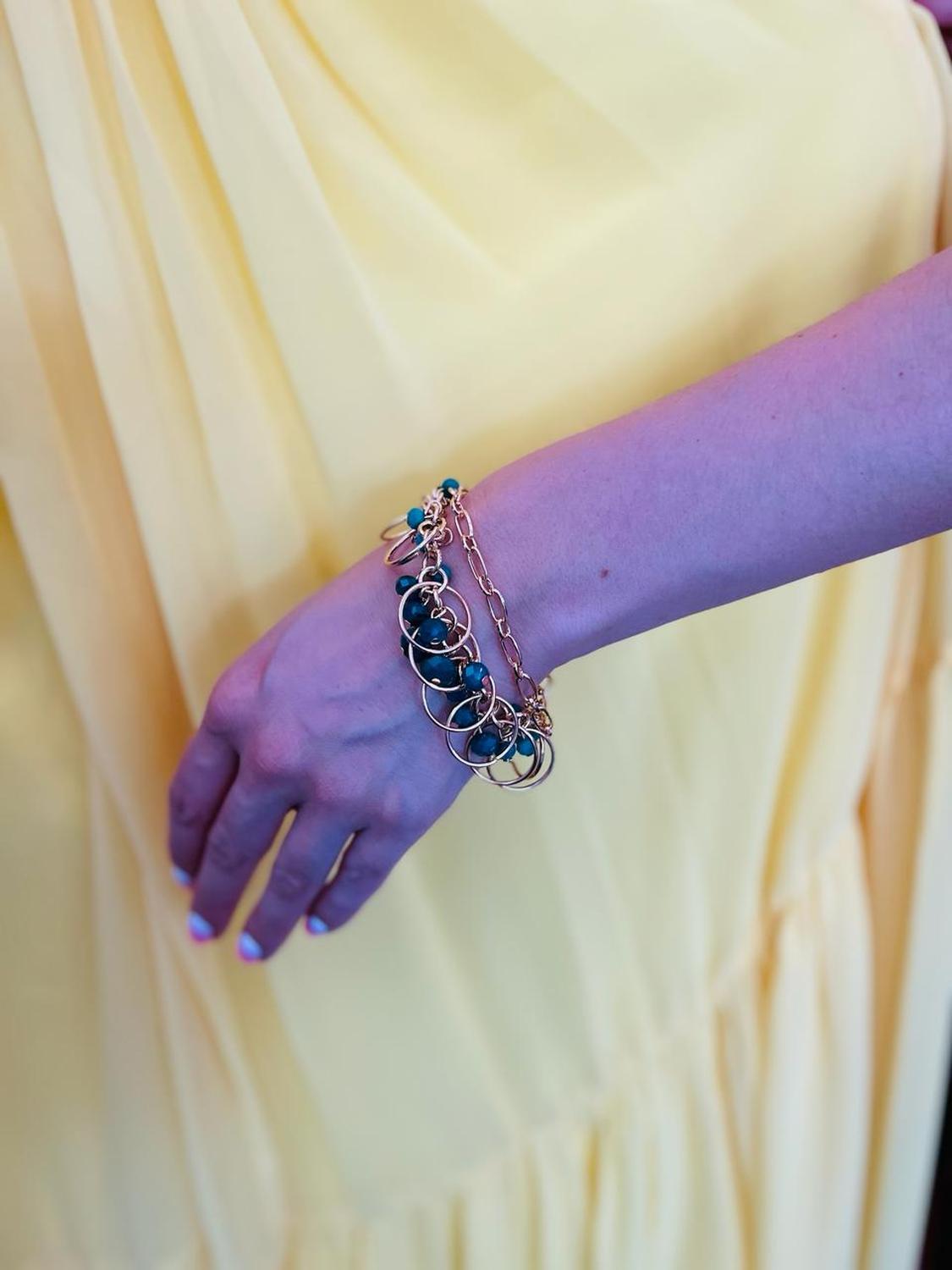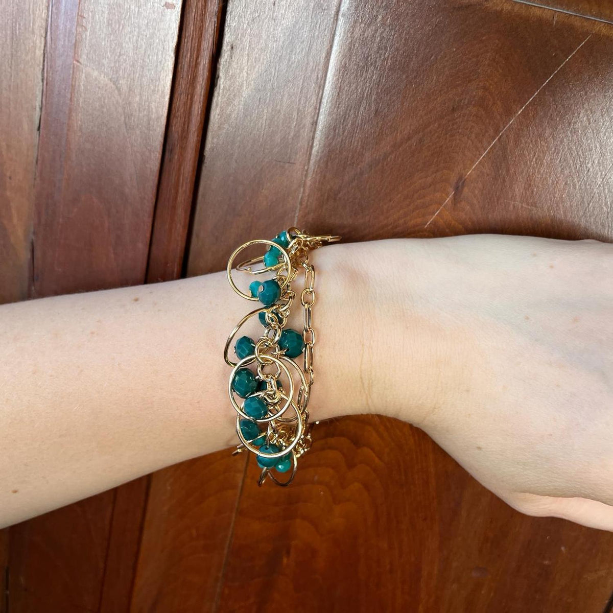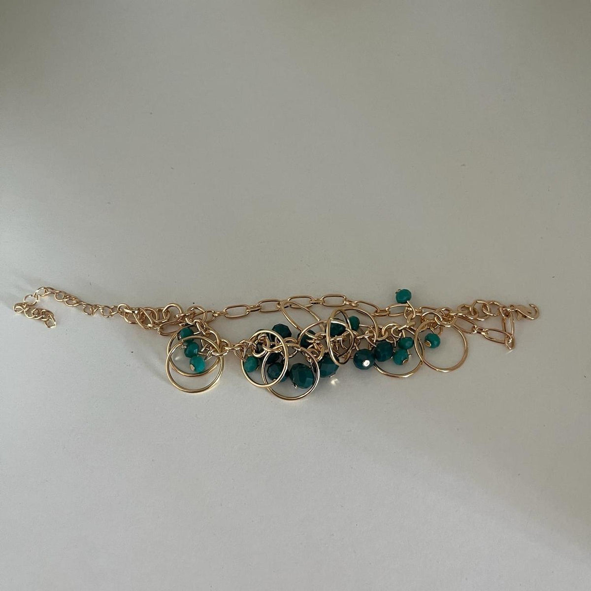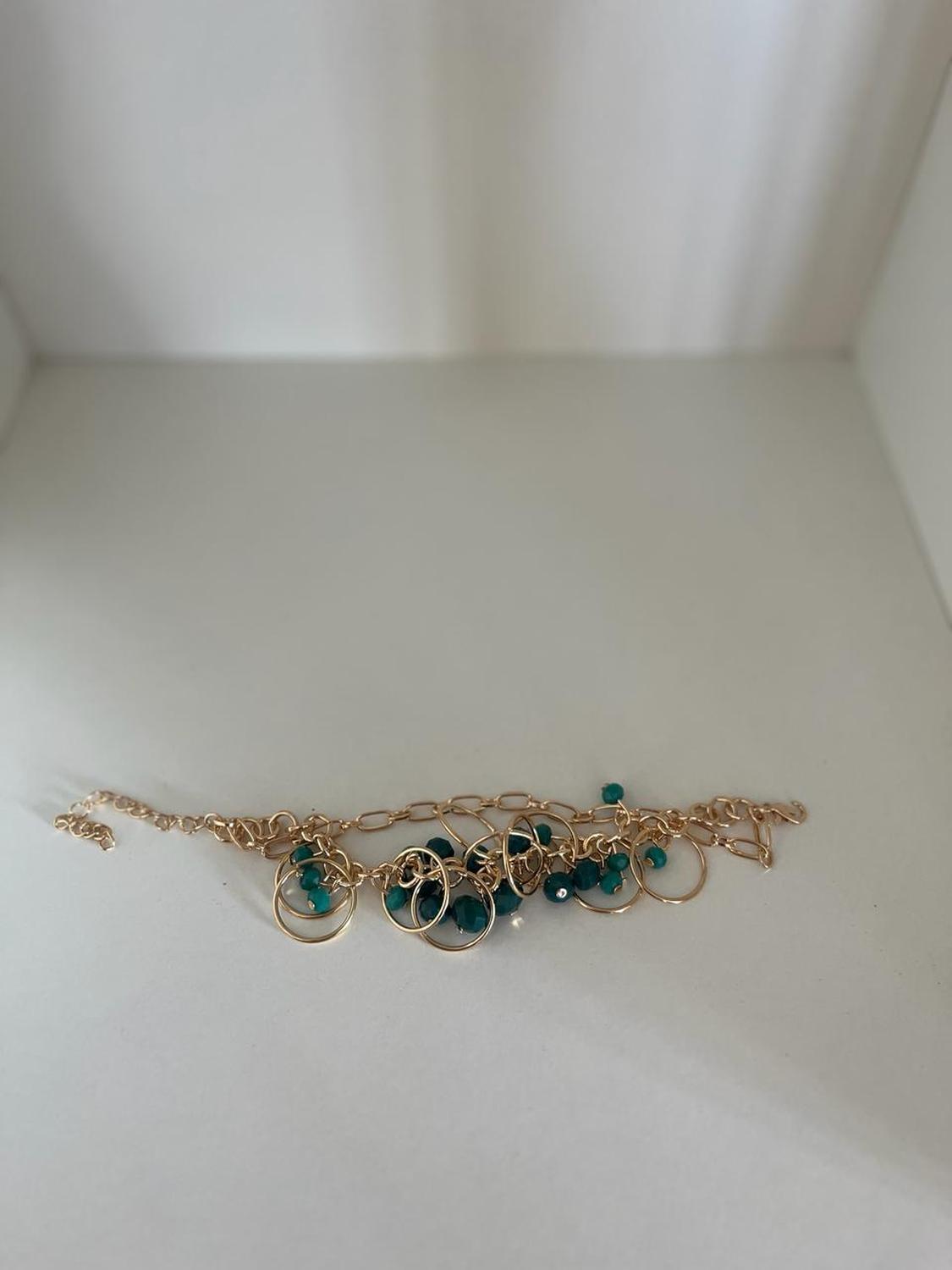 Pulsera Color Verde con Diseño de Anillo Y Cadena