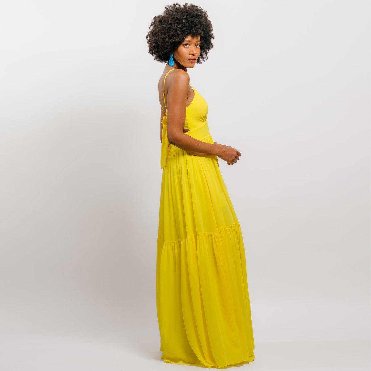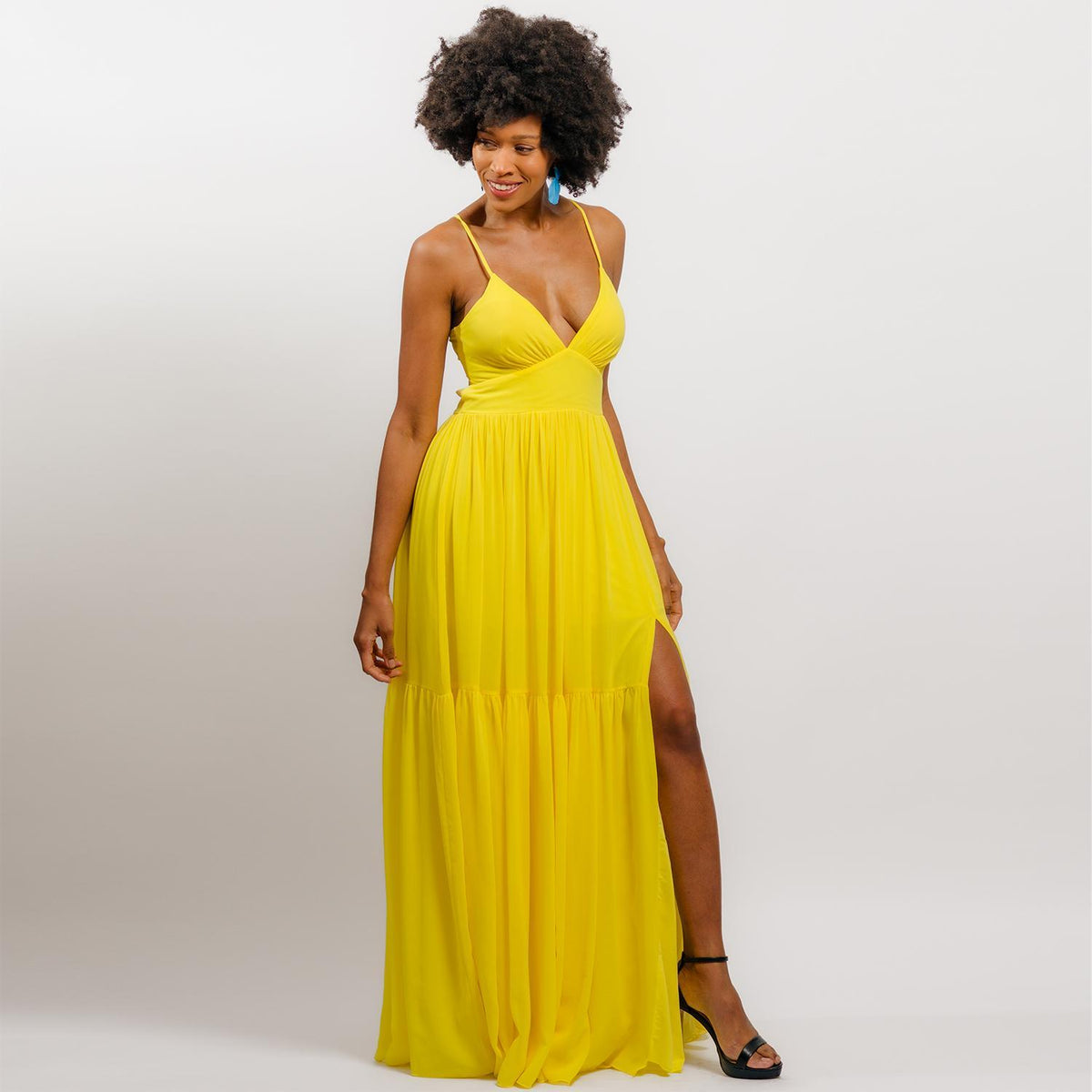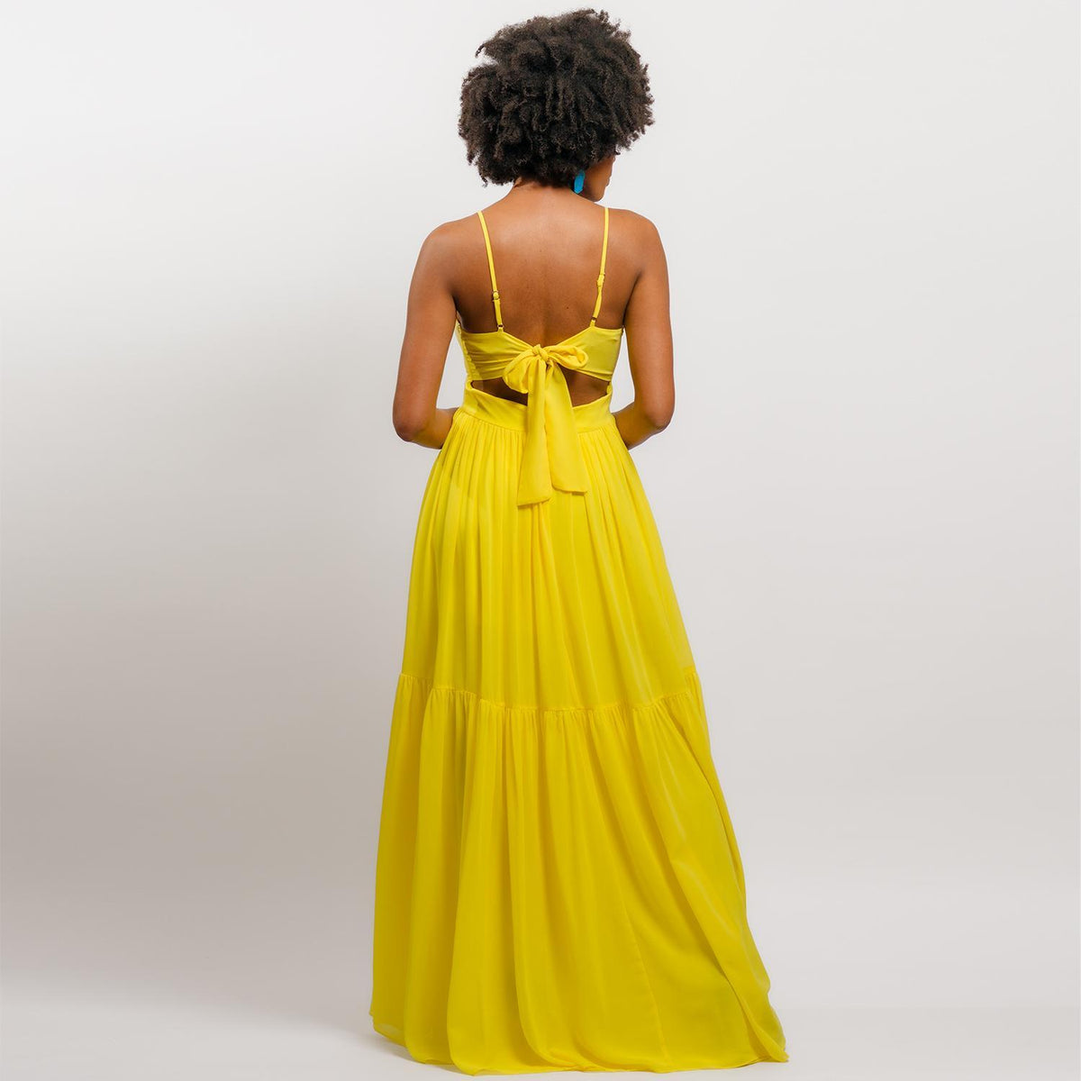 - Vestido De Fiesta Alta Costura Media Espalda Amarillo