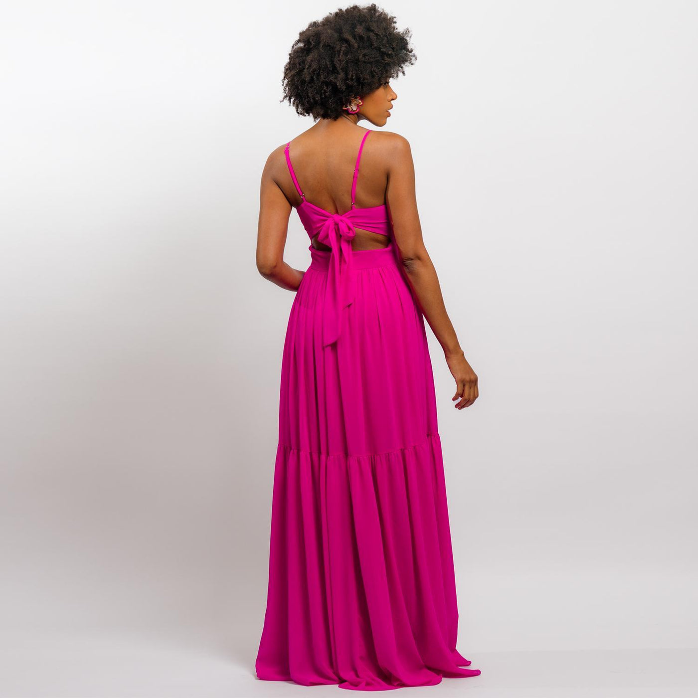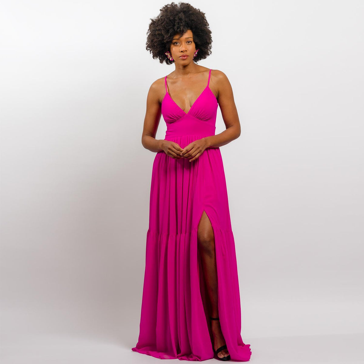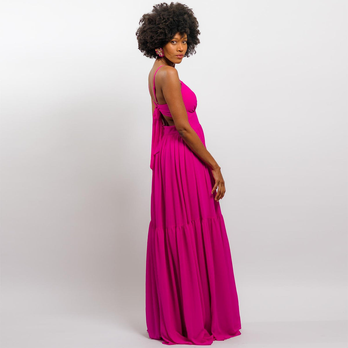 - Vestido De Fiesta Alta Costura Media Espalda Fucsia