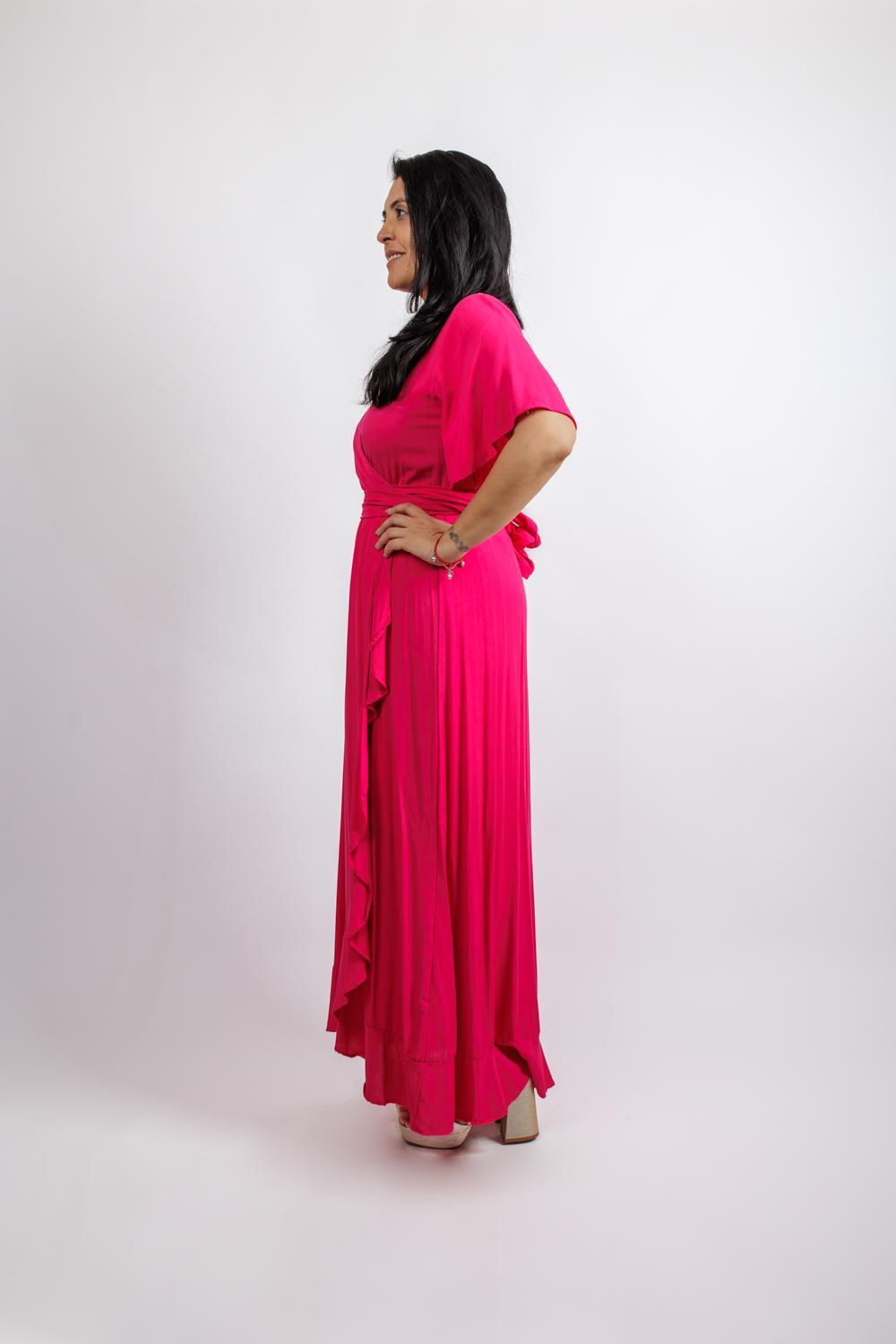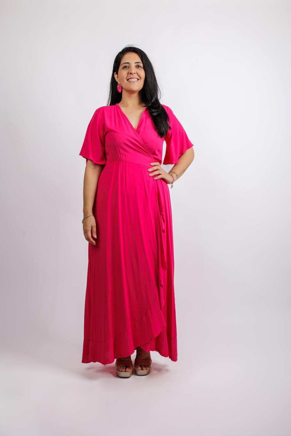 Este vestido es la elección perfecta para las mujeres que desean destacar con elegancia y un toque de audacia en cualquier ocasión especial. El fucsia es un color audaz y lleno de vitalidad que te hará destacar en cualquier evento. Este vestido presenta un tono fucsia vibrante que te llenará de confianza y sofisticación, nuestra selección incluye diseños para todos los gustos y preferencias. Desde vestidos elegantes y clásicos hasta opciones modernas, ya sea que busques un vestido para una fiesta, una boda, una graduación o una salida nocturna,Ya sea que prefieras un estilo clásico y atemporal o te inclines hacia las últimas tendencias de la moda, con una amplia variedad de estilos, colores y longitudes, encontrarás el vestido ideal para cada momento especial. Vestido Largo Fucsia Envolvente