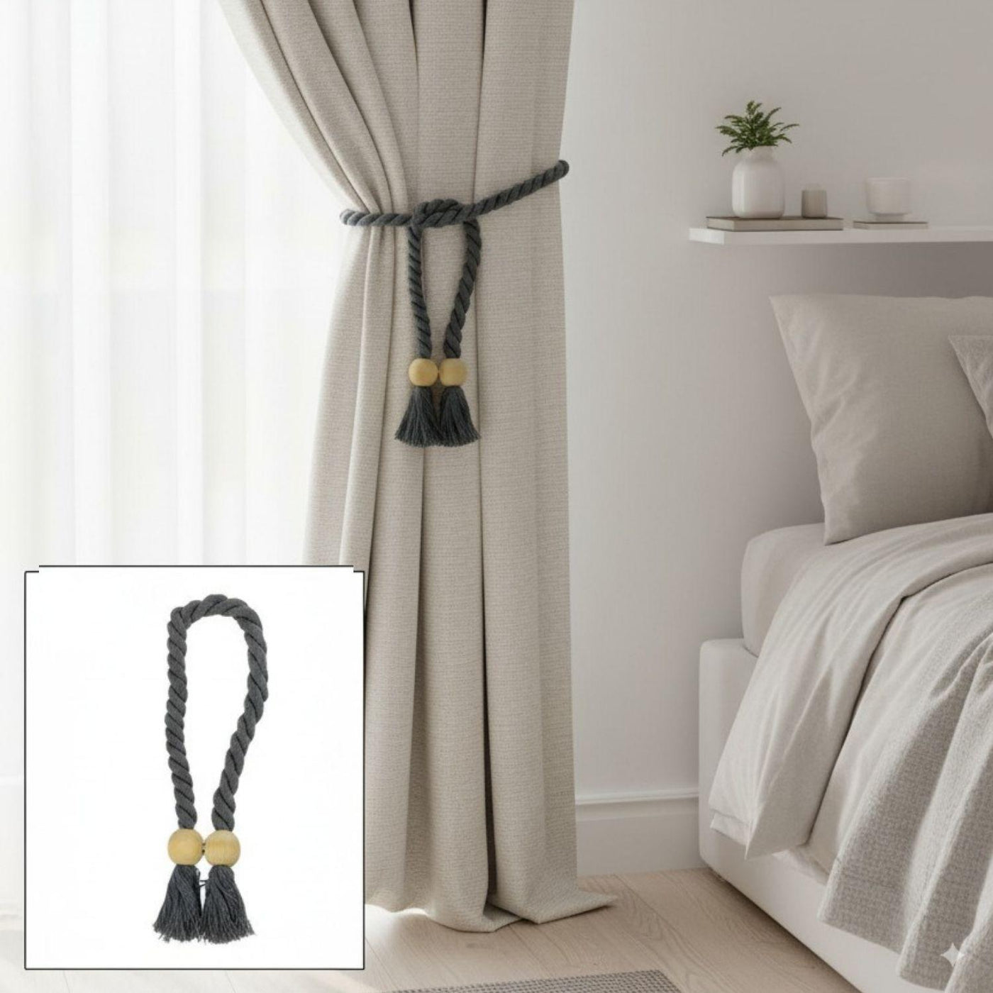 Set 2 Amarra Cortina Borlas con Magnético Boho Gris