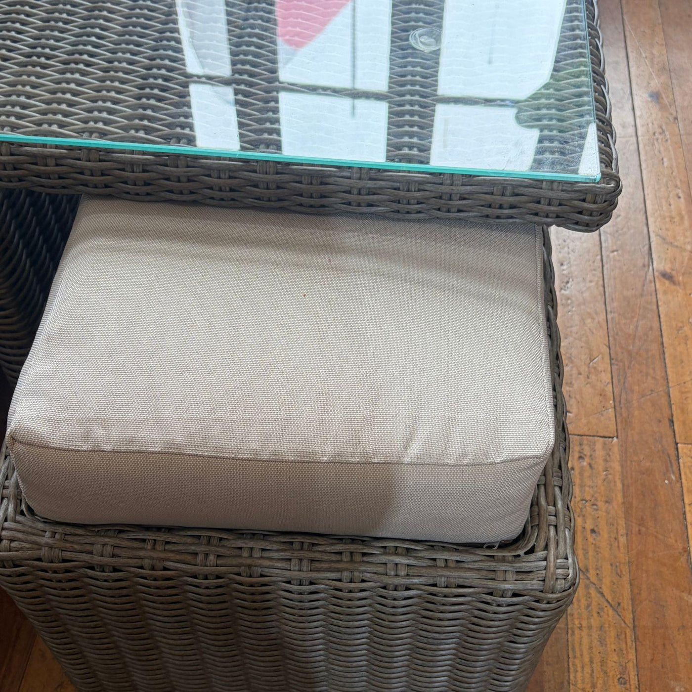 Mesa de centro Largo: 100 cm, Ancho: 100 cm, Alto: 53 cm. 4 PUF de 45 cm (cuadrados)