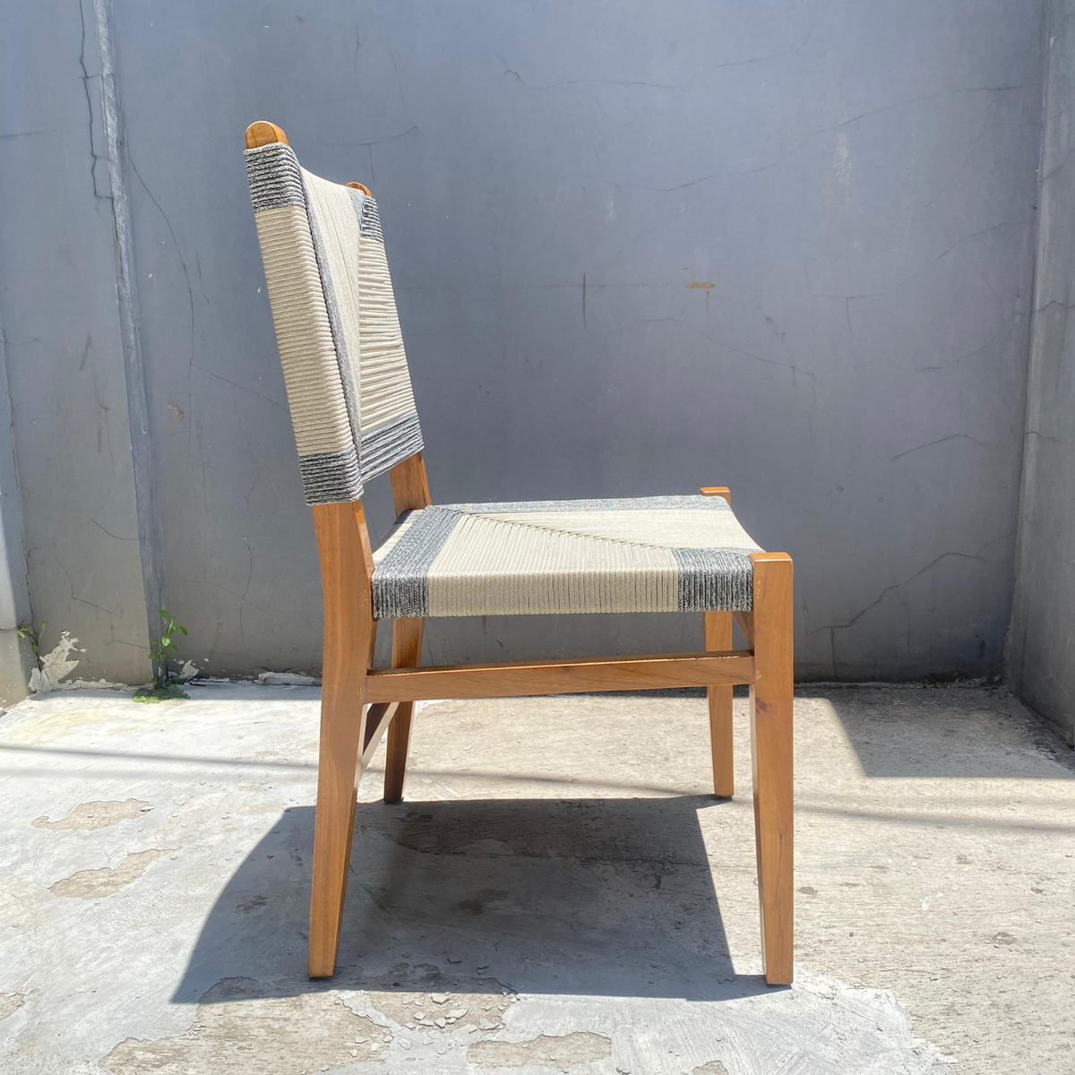 Descubre la silla perfecta para disfrutar del sol, la brisa y la naturaleza! Nuestra silla de madera Teka y cuerda náutica es una opción elegante y funcional para cualquier espacio.