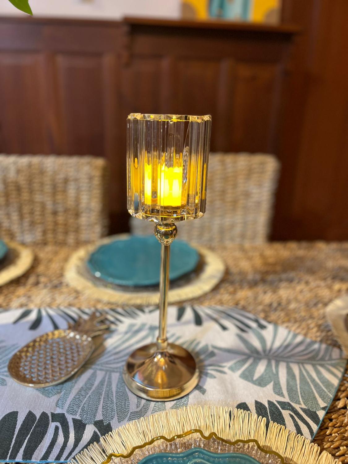 El Candelabro Largo Dorado Copa Transparente es una declaración de estilo y sofisticación. El tono bronce evoca una sensación de calidez y nostalgia, y con su diseño elegante, este candelabro se convierte en una pieza atemporal que añade un toque de encanto a cualquier espacio. Medidas 11,5 cm x 38 cm (Diametro x Alto)