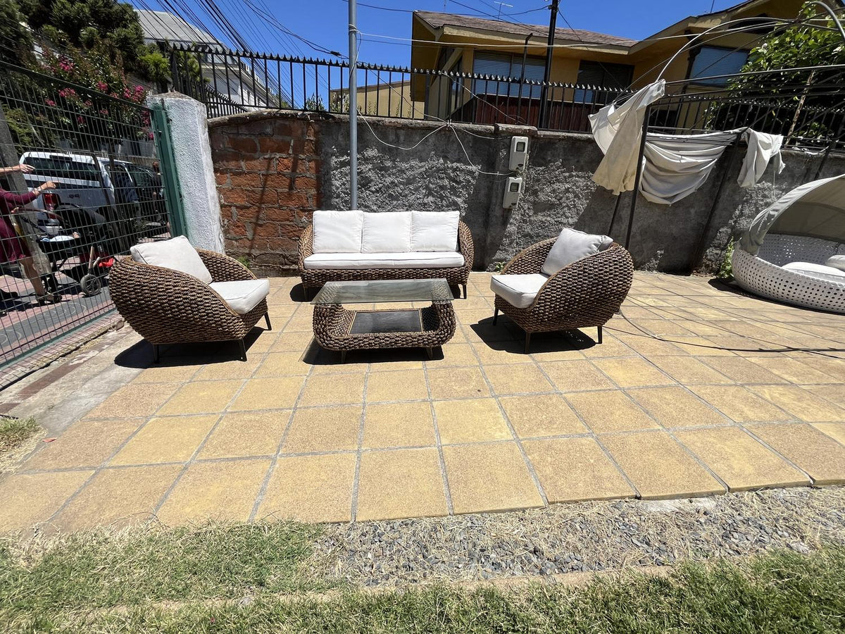 Ratán natural, muebles ratán Chile, comedor ratán, silla ratán, terraza ratán, living exterior, muebles sustentables, fibras naturales, rattan natural Chile, TerraEstilo, muebles terraza premium
