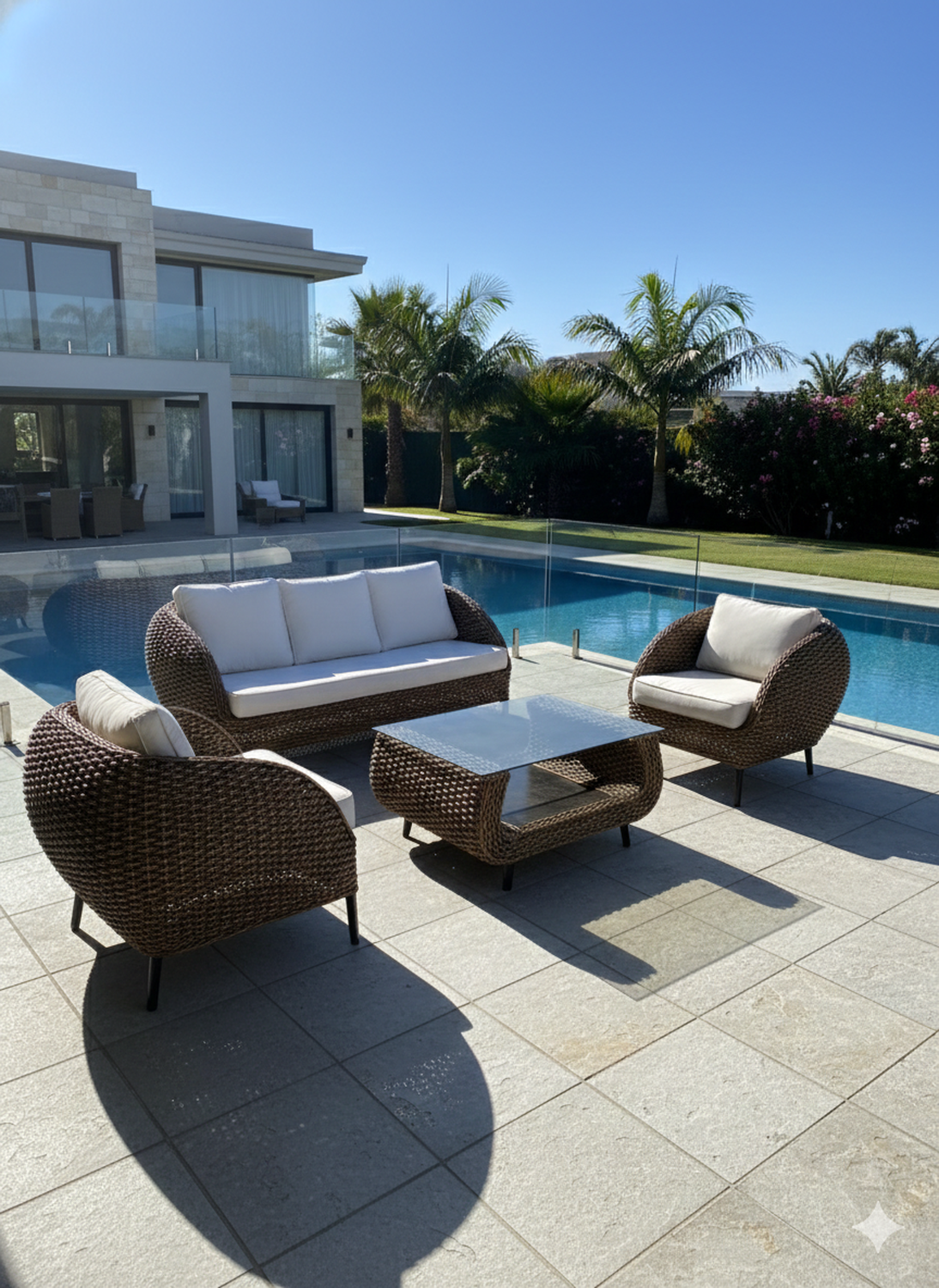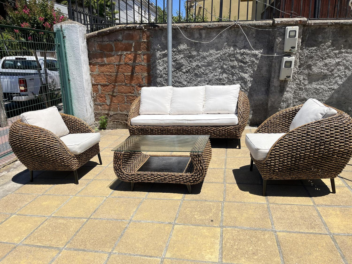 Cada pieza es tejida a mano por artesanos, permitiendo que cada mueble sea único, con vetas y tonalidades que reflejan la belleza de la naturaleza. Su diseño combina un estilo premium, cálido y atemporal, perfecto para terrazas, quinchos, livings interiores y ambientes de lujo silencioso.